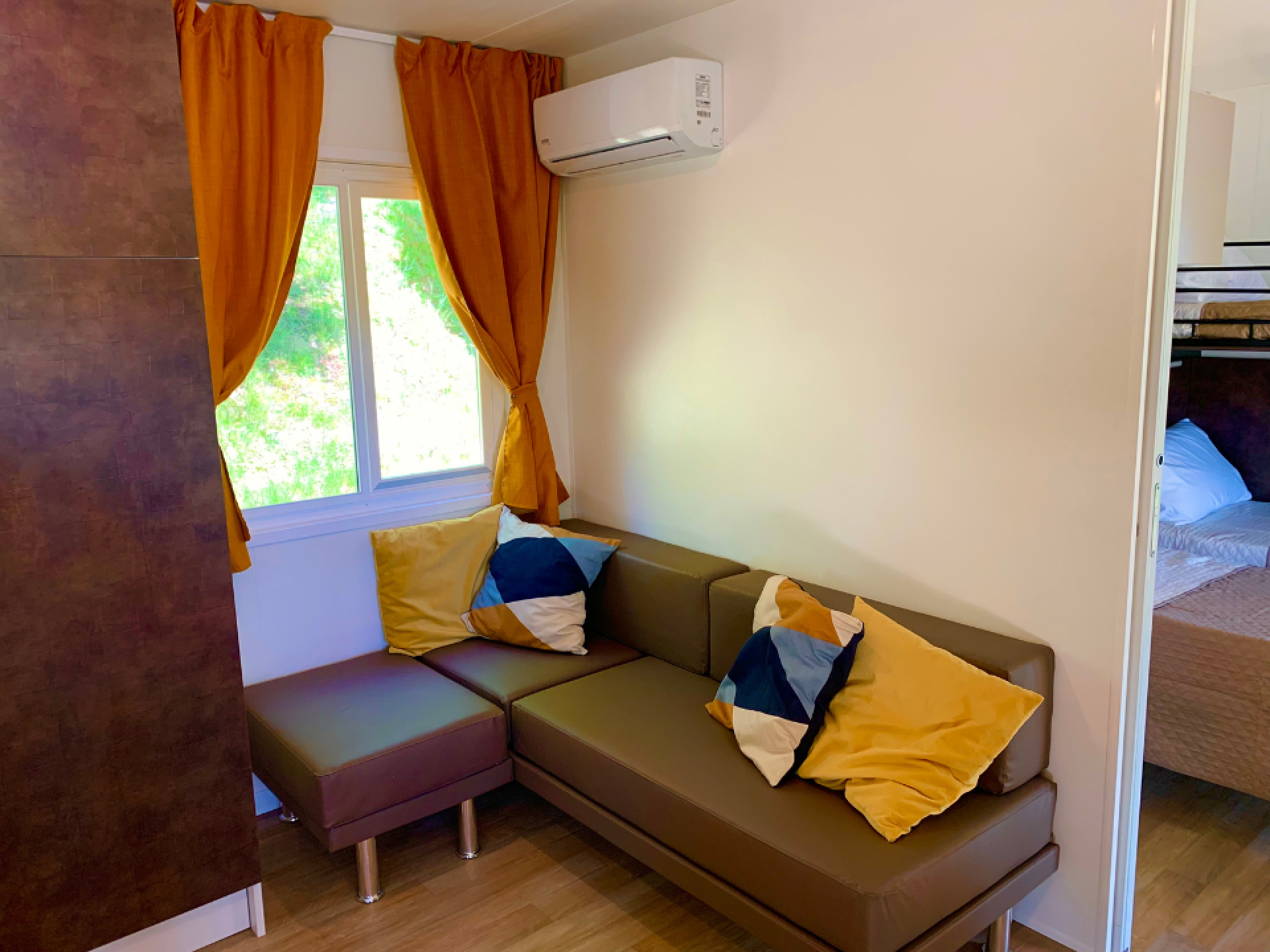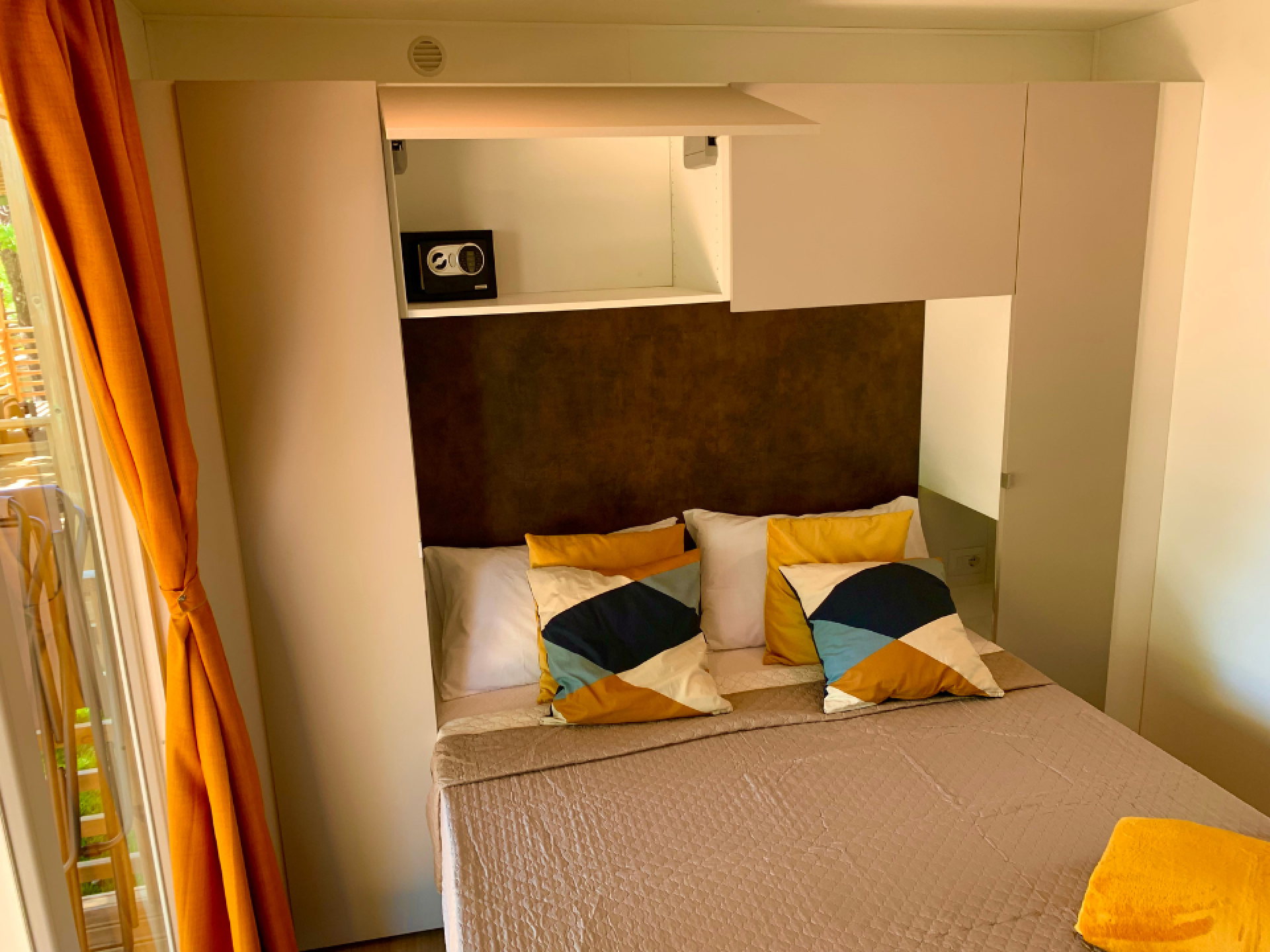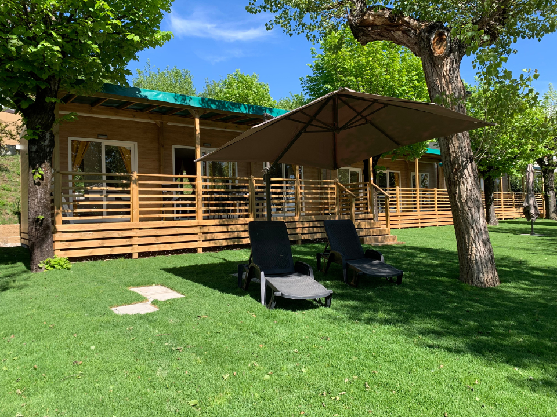 La casa mobile SPECIAL GARDEN si distingue per il suo ampio giardino attrezzato con sdraio, ombrellone e BBQ a gas e per la sua spaziosa veranda. La sistemazione Special Garden (m² 35) ospita max 5 persone, ideale per gli amanti della vacanza all’aria aperta a due passi dalla spiaggia. L'alloggio è completamente attrezzato e dispone di: soggiorno con aria condizionata, angolo cottura con piano ad induzione e lavastoviglie, divano, 1 camera da letto matrimoniale, 1 camera da letto con 3 letti singoli (di cui uno a bandiera) e 2 bagni con Wc, doccia e lavabo. Un parcheggio auto incluso. Animali NON ammessi.