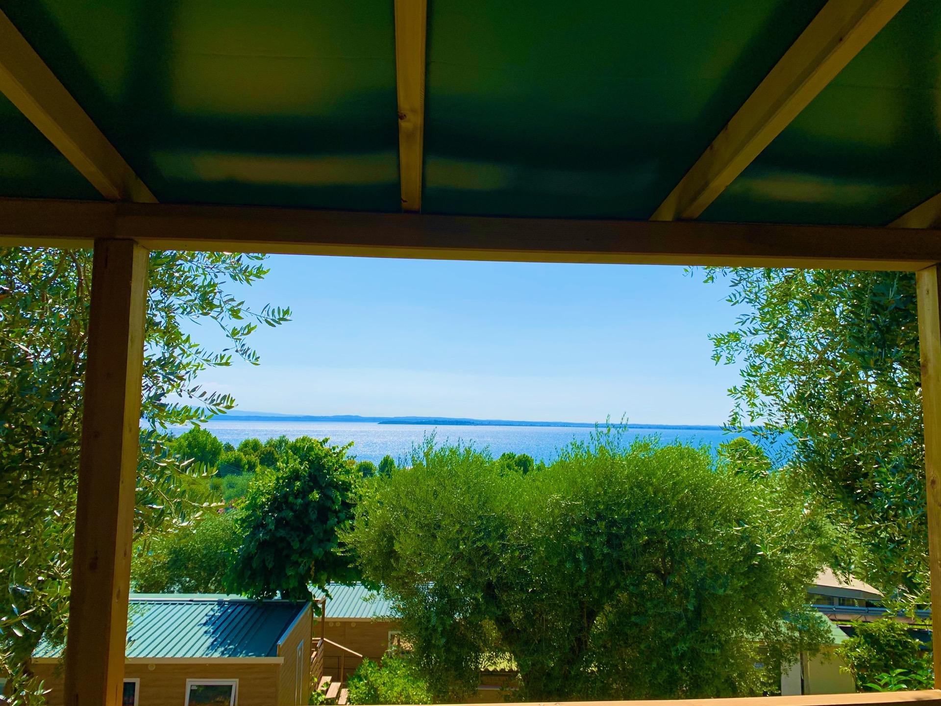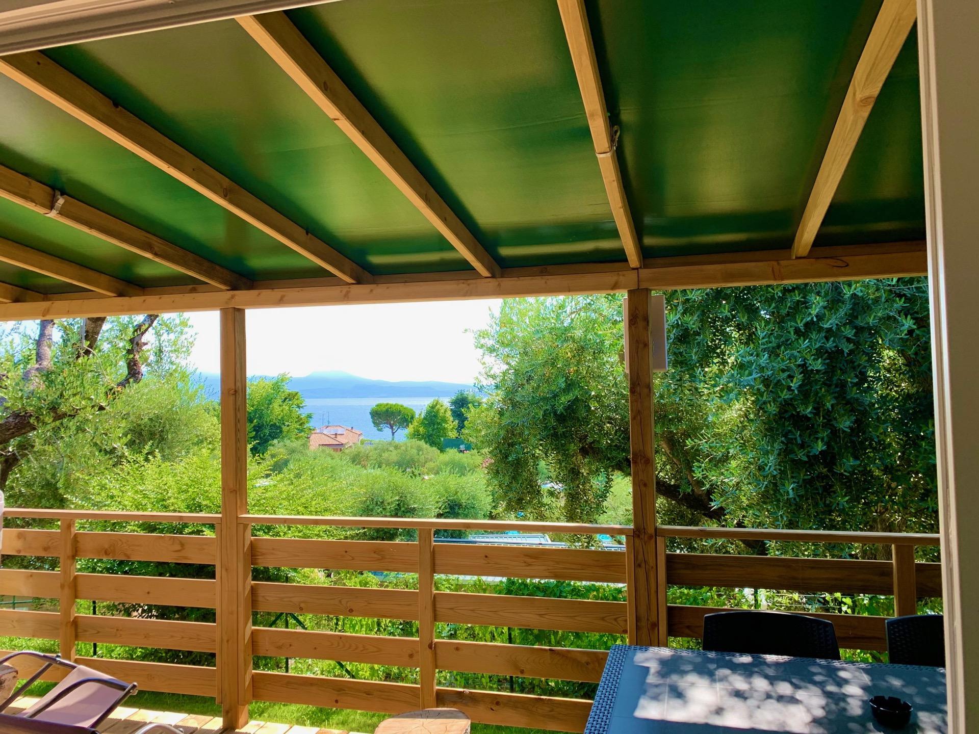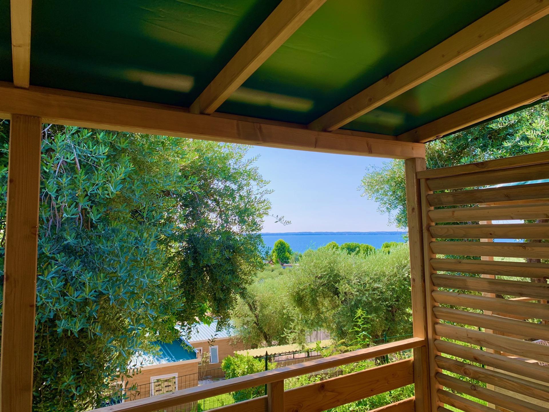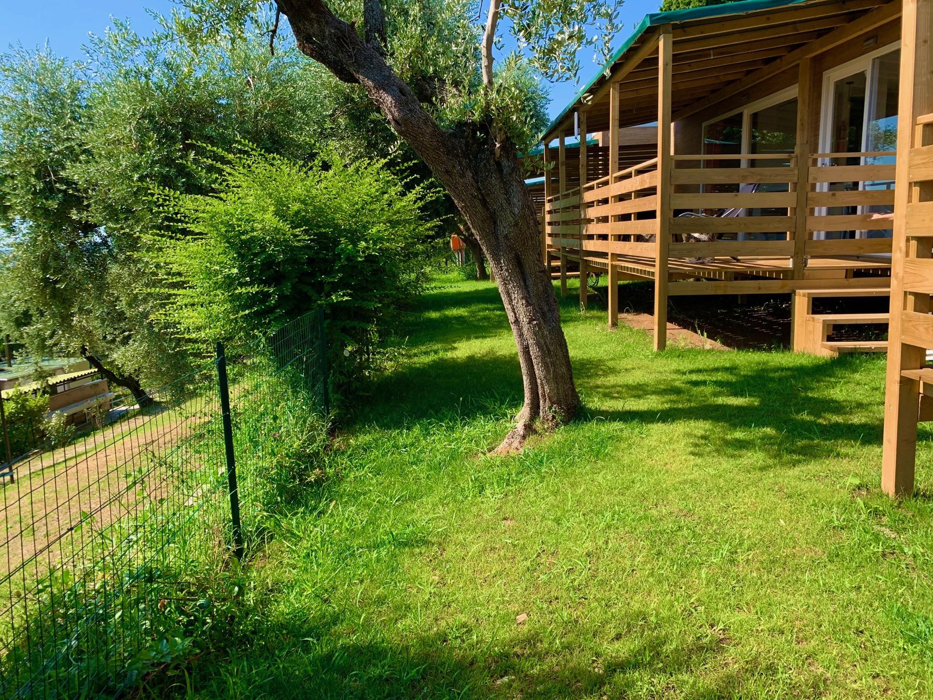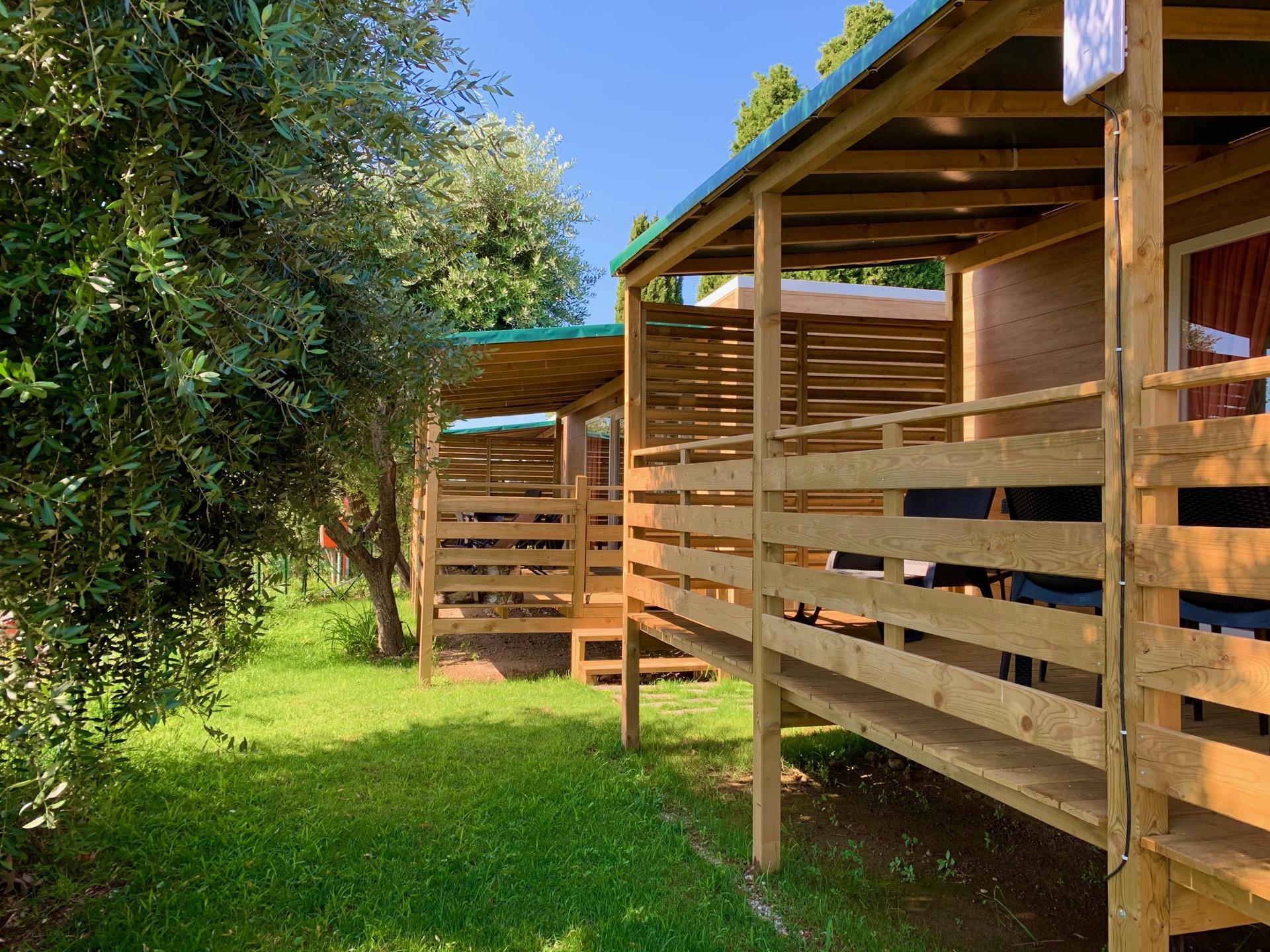 La casa mobile TOP HILL può ospitare fino a 5 persone. La casa mobile, con una superficie di 37 mq, offre spazi funzionali e confortevoli; la sistemazione dispone di soggiorno con aria condizionata, angolo cottura e divano, 1 camere da letto matrimoniale, 1 camera da letto con 3 letti singoli (di cui uno a bandiera) e 2 bagni con Wc, doccia e lavabo. All’esterno veranda coperta (8 x 2,5 m). Un posto auto incluso. Animali NON ammessi.