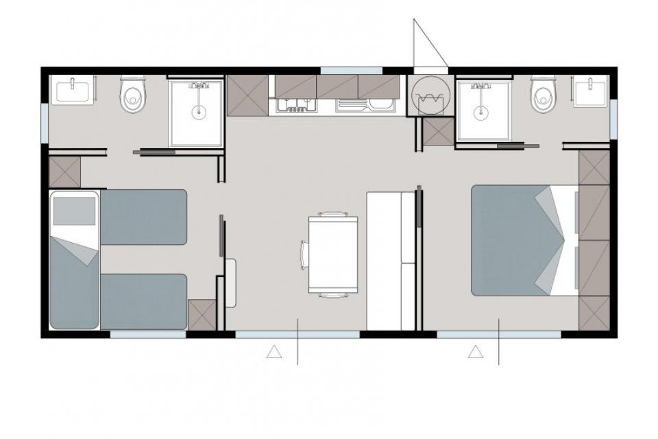 La casa mobile PANORAMA SPA DOG (33 m²), pensata per una vacanza all’ insegna di relax e tranquillità, dispone di 5 posti letto sistemati in una camera matrimoniale ed una con tre letti singoli di cui uno a bandiera. Ogni stanza ha accesso diretto al proprio bagno con wc, lavabo e doccia. La zona giorno è attrezzata con piano cottura ad induzione, frigorifero con cella freezer, forno a microonde, macchina per il caffè americano o bollitore. Divano letto disponibile in cucina. All’esterno si trovano una meravigliosa veranda panoramica con vista sul lago ed uno giardinetto con vasca idromassaggio privata. Un posto auto incluso. Massimo 2 animali domestici ammessi.